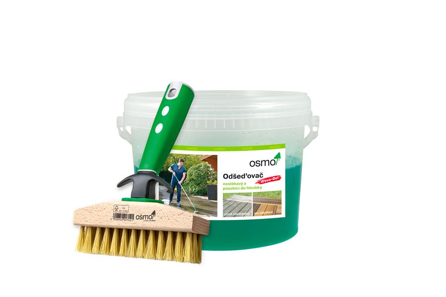 OSMO – ODŠEĎOVAČ DREVA GÉL je vysoko účinný čistiaci gél, na očistenie zašednutého dreva vo vonkajších priestoroch. Odstraňuje šednutie dreva, je hustej konzistencie a preto nesteká a nekvapká. Dá sa ľahko rozotierať, aj na zvislých plochách, nesteká. Gél pôsobí do hĺbky, koncentrát špeciálne vyvinutý na bezproblémové odstránenie zeleného povlaku / porastu na ošetrených aj neošetrených povrchoch dreva.